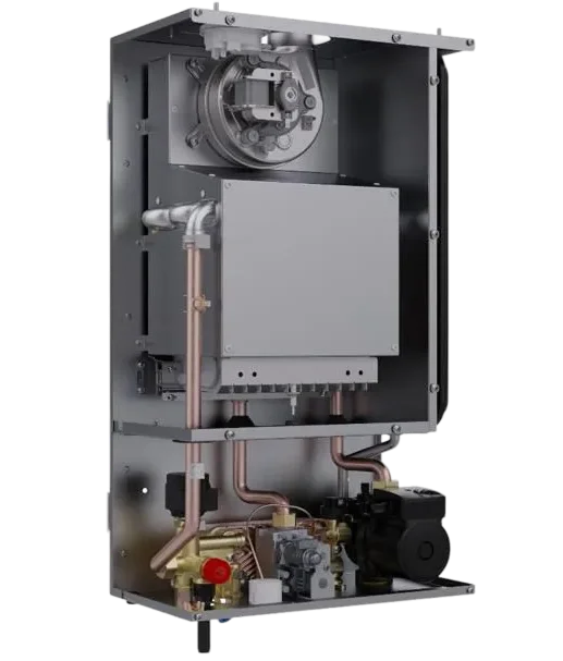 Модулируемая горелка автоматически регулируется в зависимости от потребности в тепле, обеспечивая экономию энергии и стабильную работу.
